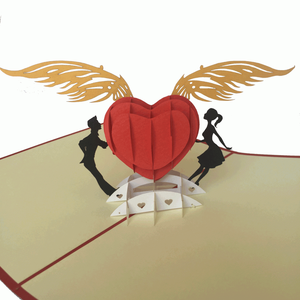 pop-up hart met vleugels kaart