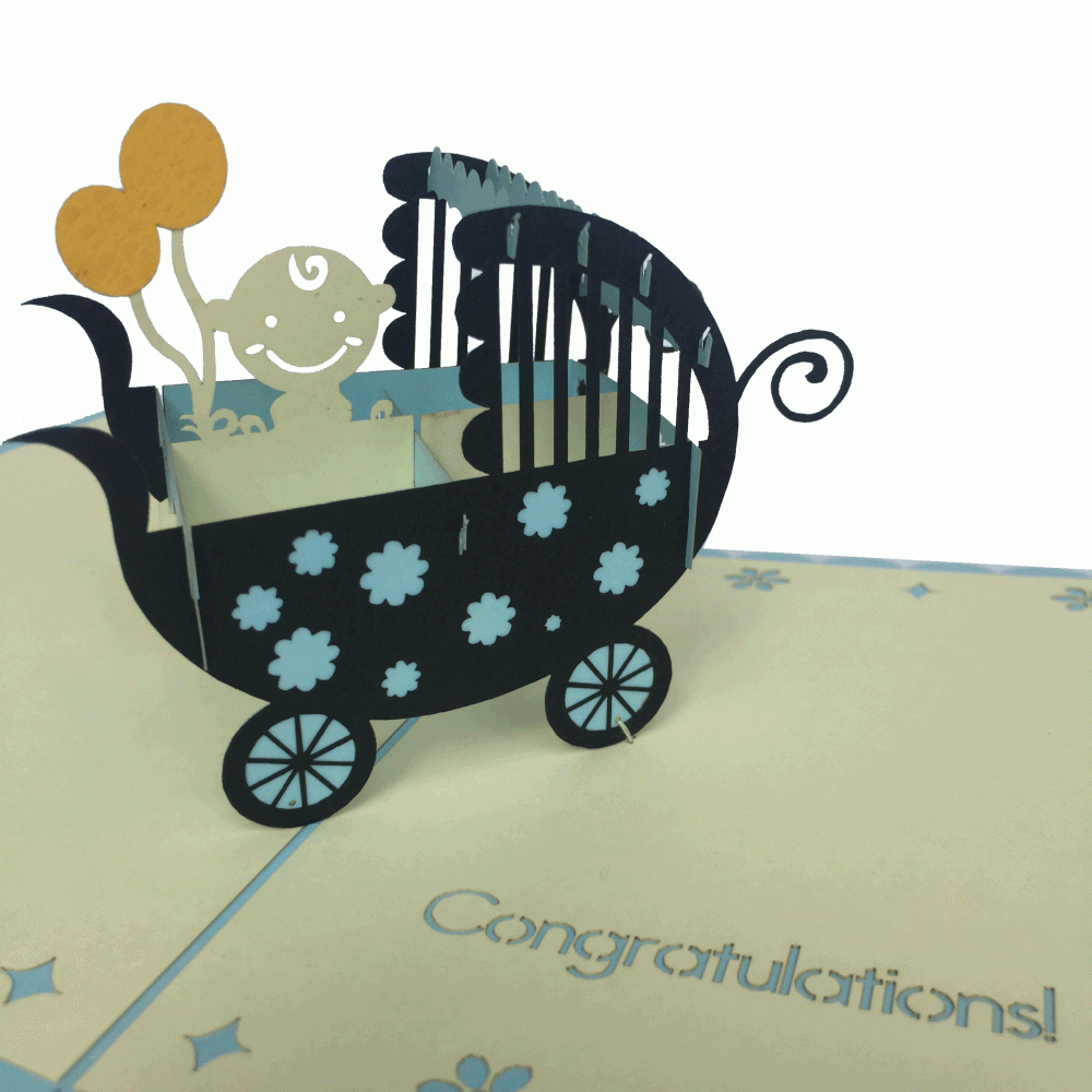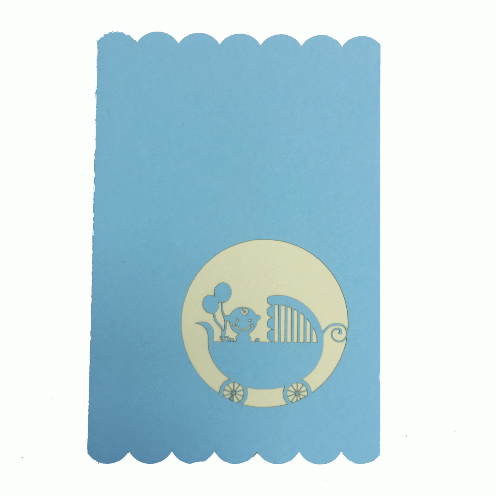 pop-up blauwe baby wieg kaart