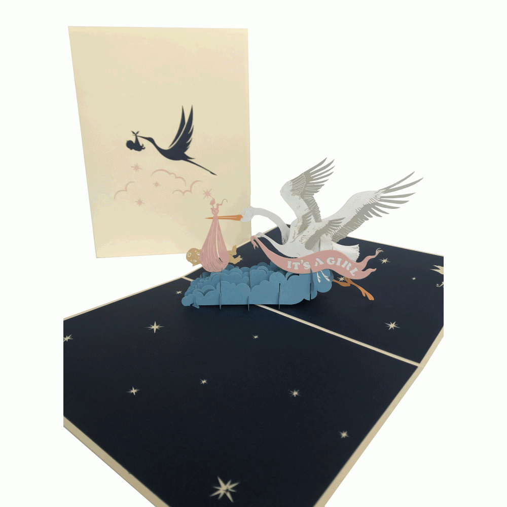 pop-up ooievaar met meisje kaart