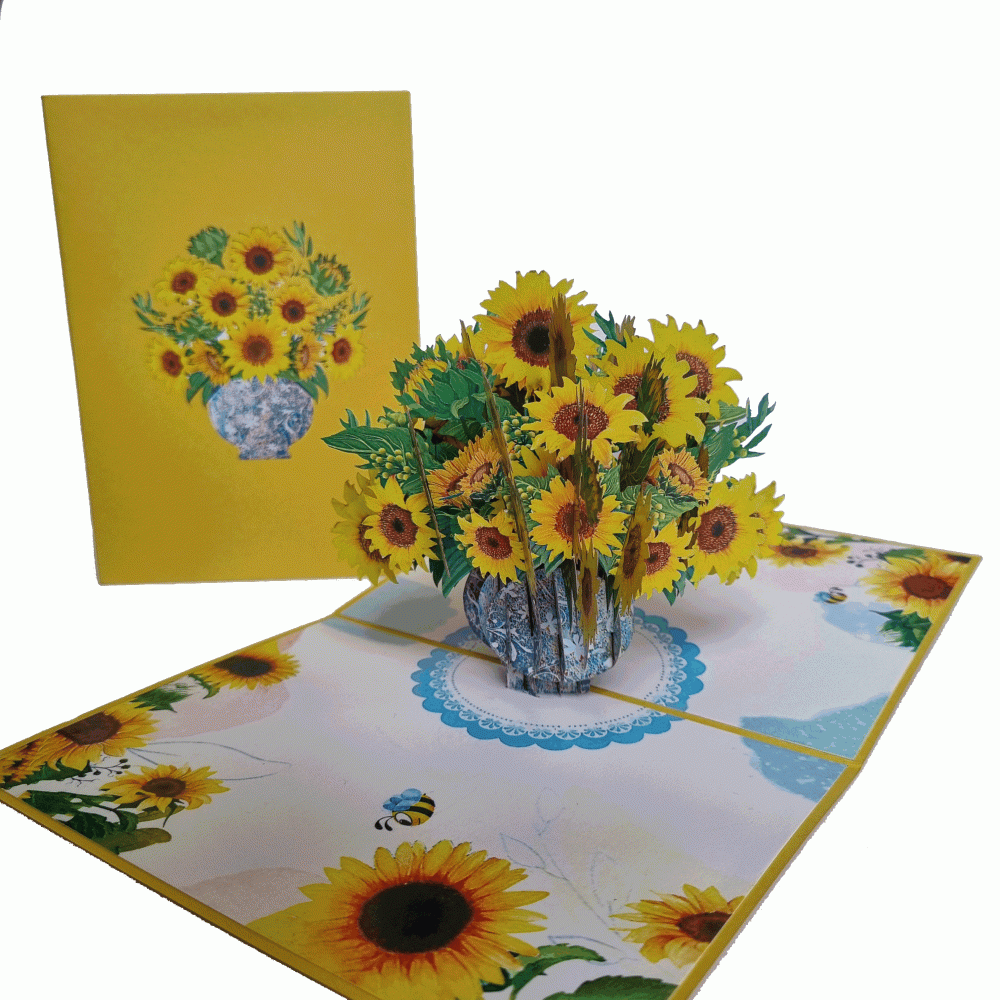 pop-up zonnebloem boeket kaart